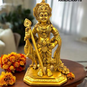 Brass Murugan Statue 10 Inch – Handcrafted Lord Kartikeya Idol – High Quality Brass Murti for Pooja, Temple & Home Decor