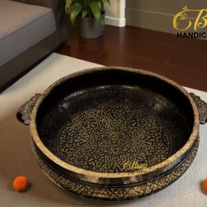 Large Brass Kerala Urli Pond | Handcrafted Antique Black Finish Urli | Intricately Carved Heavy Brass Bowl for Home & Office Decor | Traditional Indian Urli