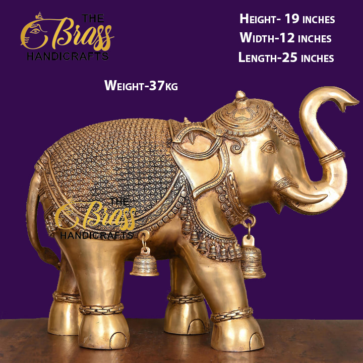 - Masterful Craftsmanship: Handcrafted by skilled artisans, this Brass Elephant statue showcases intricate detailing, from the textured skin to the ornate decorations. Each curve and feature is meticulously sculpted to capture the essence of the majestic elephant.