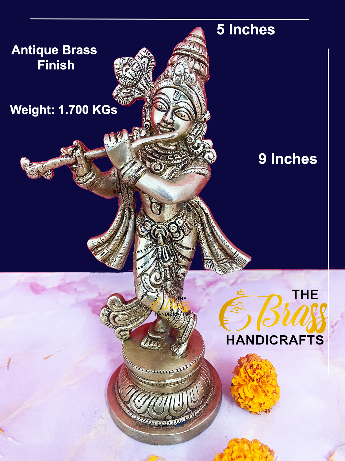 - Enhances Spiritual Spaces: Perfect for home altars, meditation rooms, or sacred spaces, the Brass Krishna statue radiates peace and serenity, inspiring spiritual contemplation and devotion.