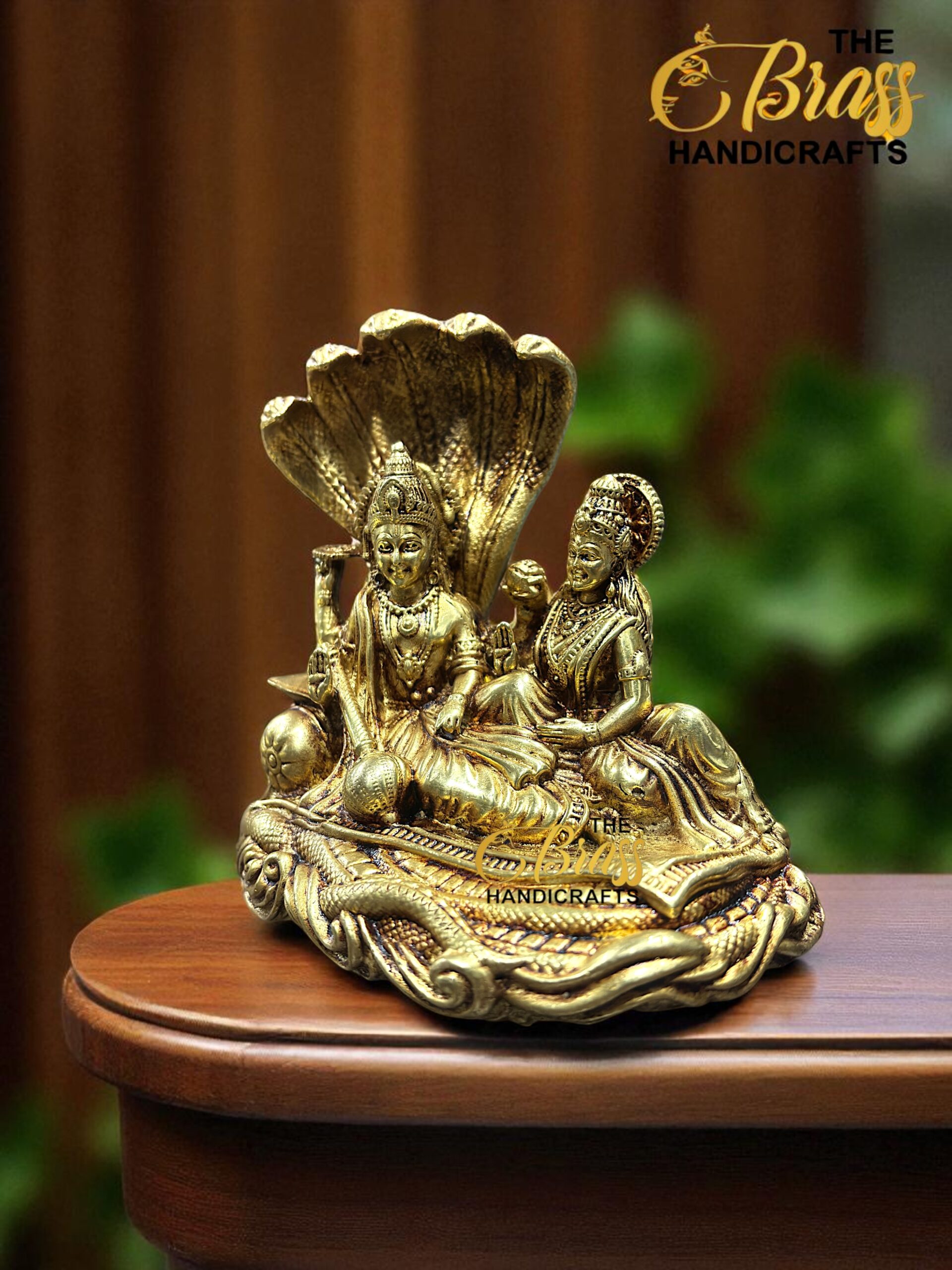 Add a touch of divine elegance to your home, temple, or office with our Brass Vishnu Lakshmi Statue on Sheshnag, a true masterpiece crafted using the traditional lost wax casting method. This exquisite piece beautifully depicts Lord Vishnu reclining on the cosmic serpent Sheshnag, with Goddess Lakshmi seated gracefully, symbolizing protection, prosperity, and spiritual harmony.