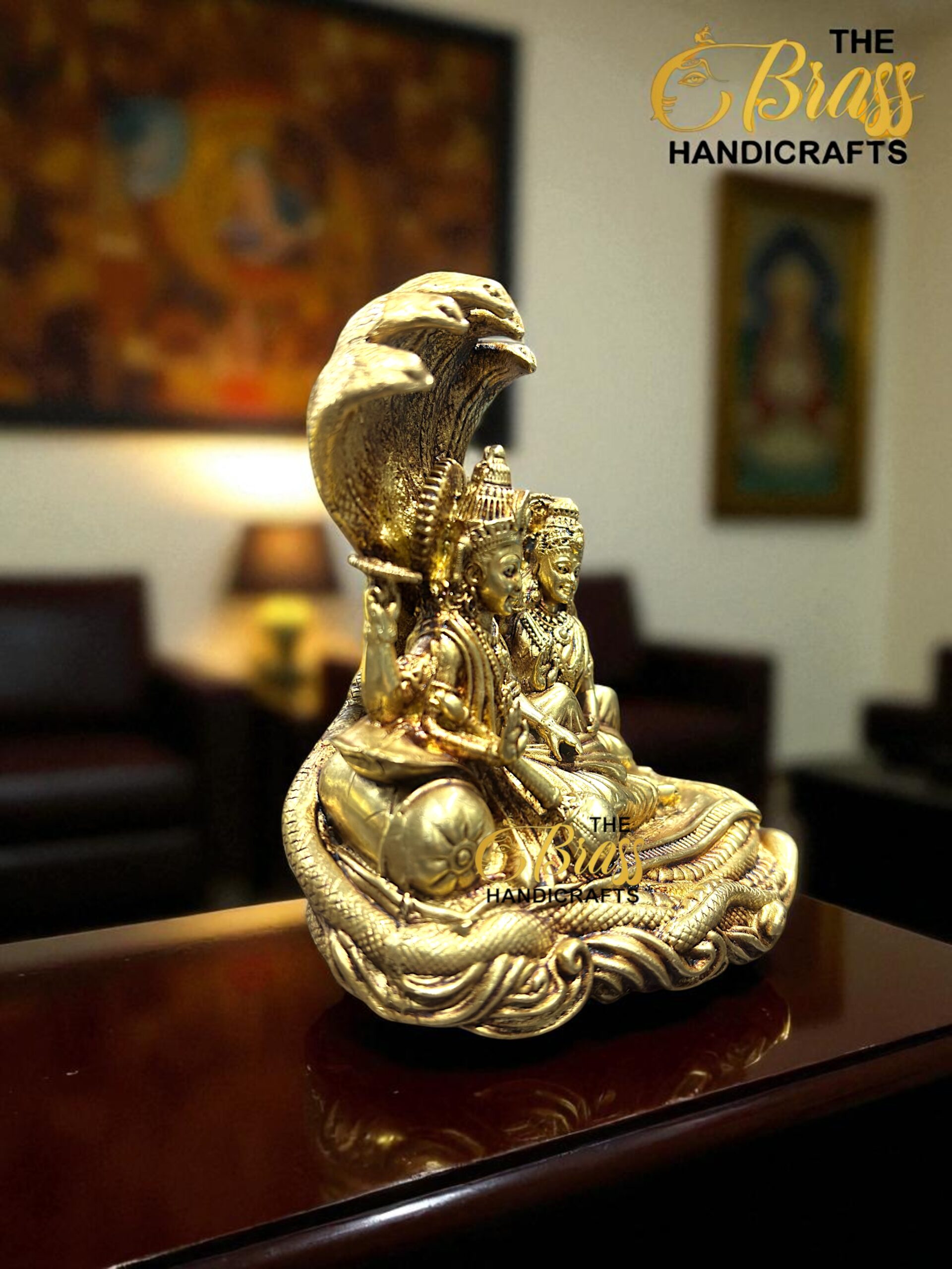 Invite divine blessings, wealth, and peace into your life with this magnificent Brass Vishnu Lakshmi on Sheshnag sculpture—a perfect blend of devotion, tradition, and artistry.