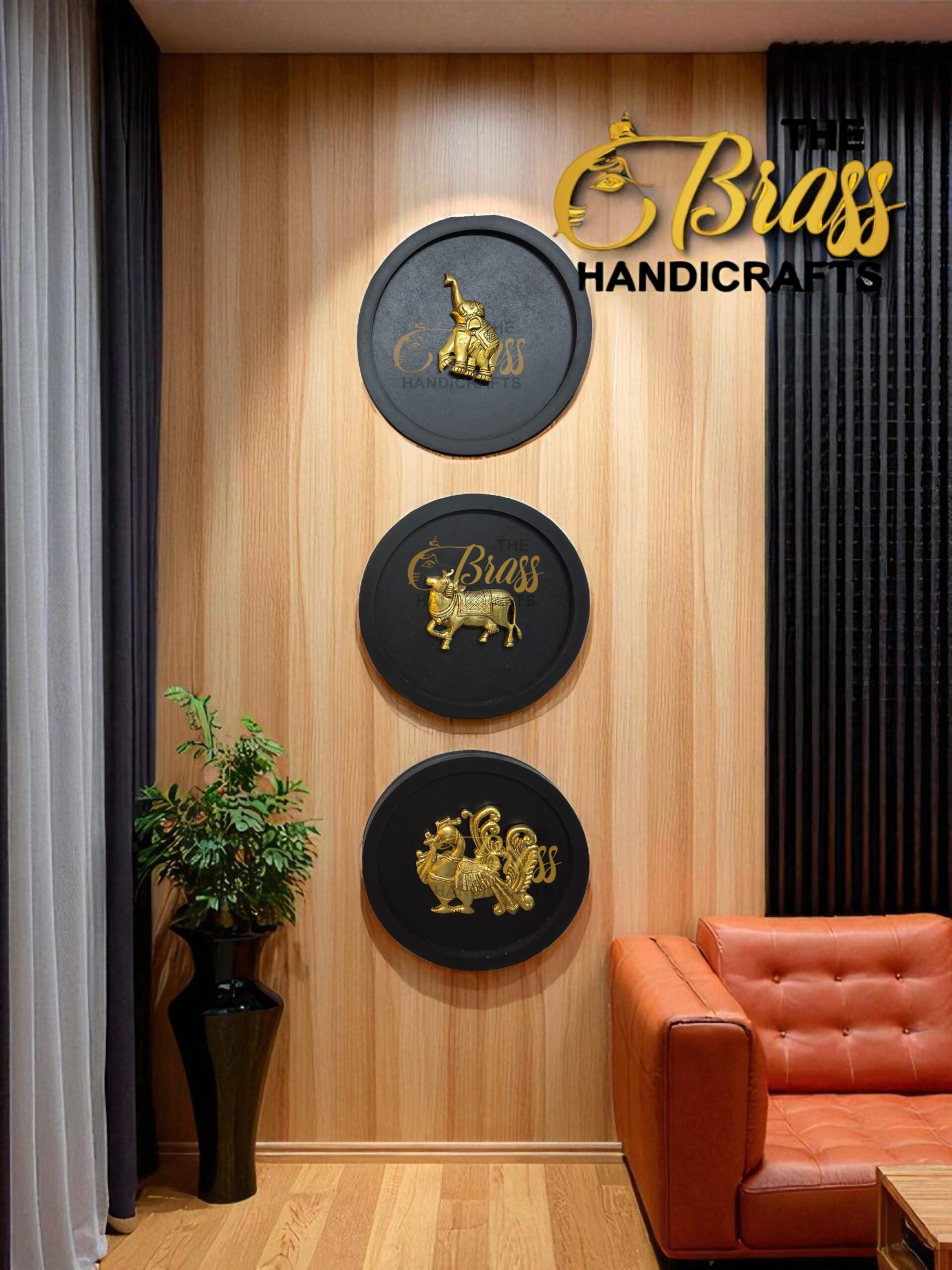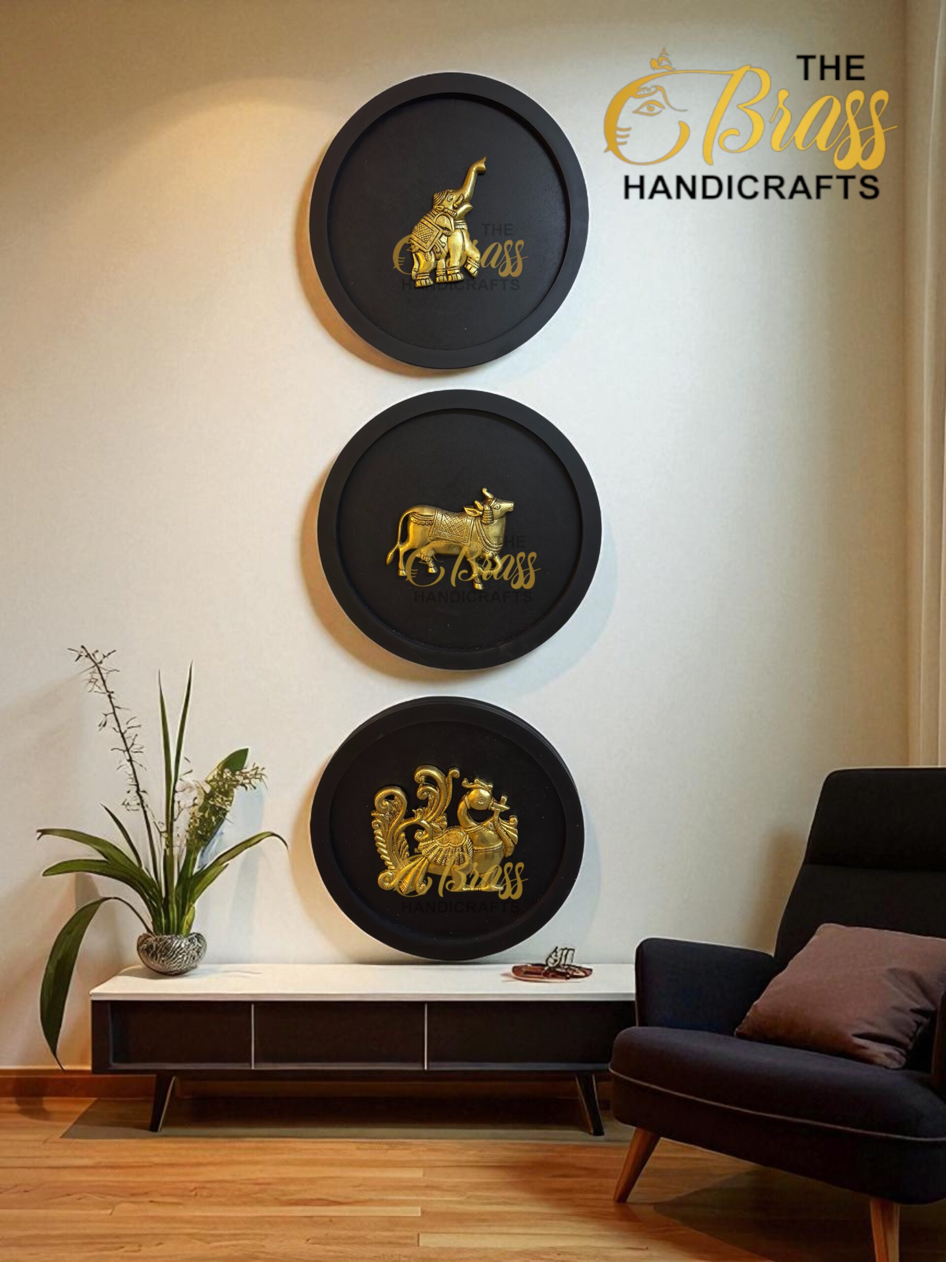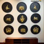 Enhance your interiors with the perfect blend of tradition and modernity through our Set of 9 Brass Wall Decor Motifs framed in elegant round wooden panels. Each piece is a stunning combination of pure brass craftsmanship and premium MDF framing, designed to bring timeless beauty and cultural richness to your space.