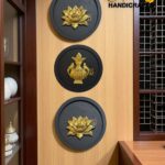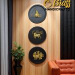Measuring 12 inches in height each, these wall frames feature unique brass motifs handcrafted by skilled artisans. The intricate detailing of the brass work reflects India’s heritage artistry, while the polished wooden round frames provide a sophisticated and contemporary touch. Together, they create a luxurious focal point that radiates charm, elegance, and positivity.