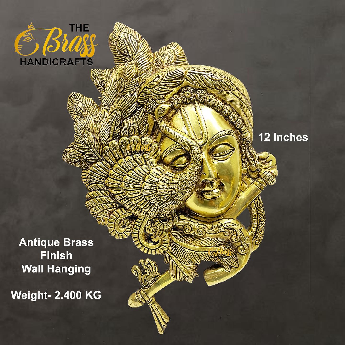 Immerse your home in the divine aura of our exquisite “Krishna with Peacock” wall hanging, a true masterpiece of craftsmanship and spirituality. This stunning wall art, standing at 12 inches tall and weighing a substantial 2.4 kg, is meticulously crafted from pure brass, promising both durability and an everlasting charm.