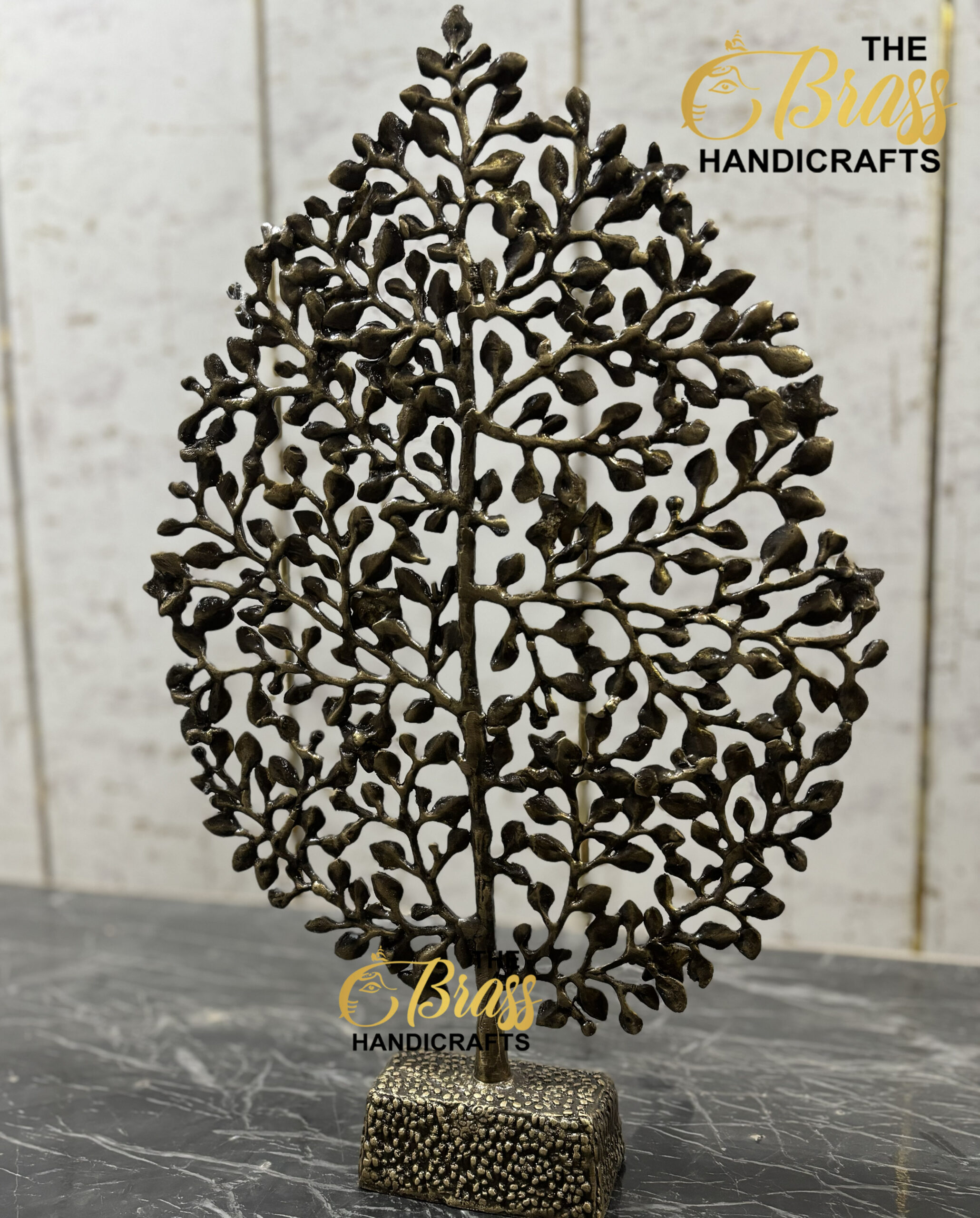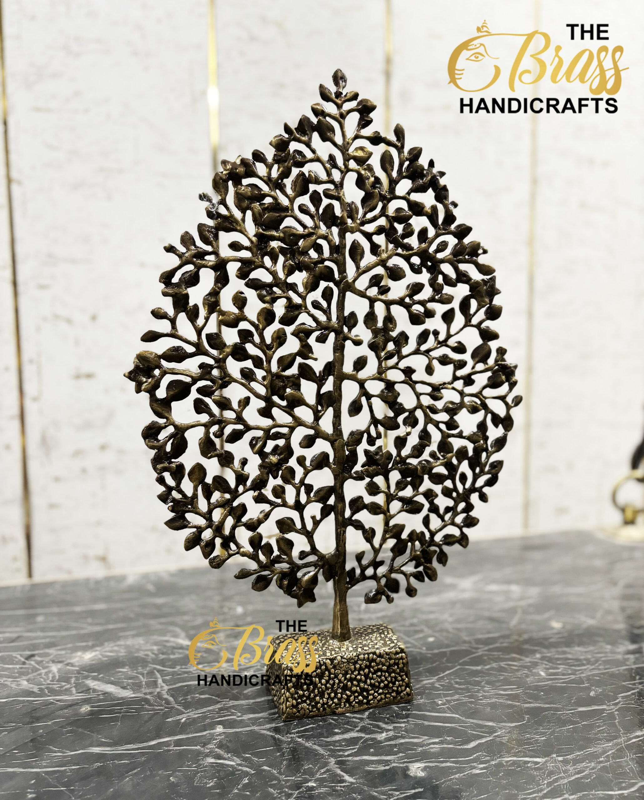 Standing proudly as a symbol of growth, stability, and prosperity, this brass tree features gracefully intertwined branches and delicate leaves that exude a sense of tranquility and harmony. The sturdy base ensures stability, making it a perfect centerpiece for any table, shelf, or mantel.