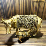 In Hindu culture, the cow is revered as a sacred animal, symbolizing abundance, fertility, and protection. The Brass Cow and Calf statue beautifully embodies these values, representing the unbreakable bond of unconditional love and care between a mother and her child. The polished brass finish adds a timeless and elegant charm, making it a captivating centerpiece for any setting.