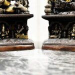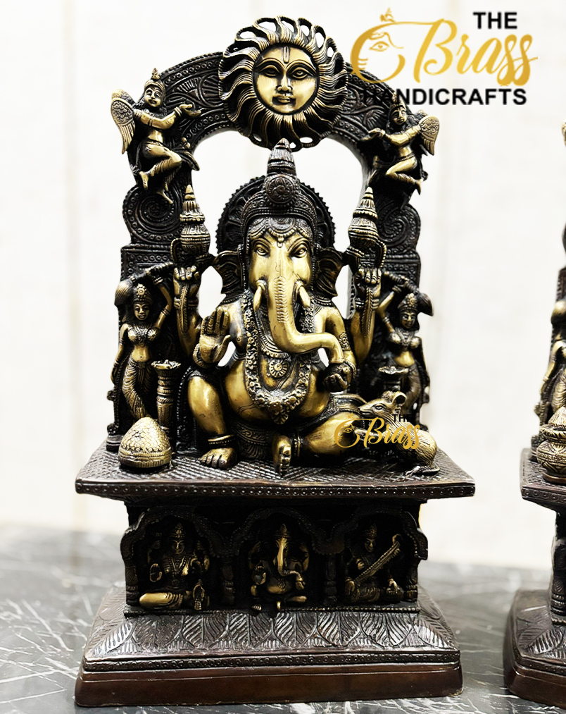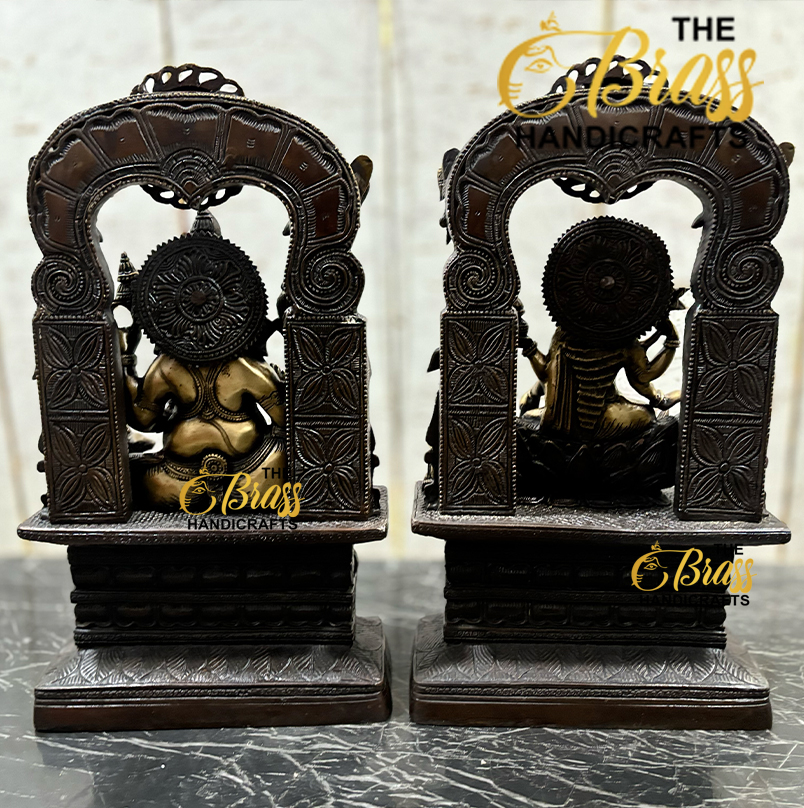 Crafted with meticulous attention to detail, the Ganesh and Lakshmi statues embody the divine grace and blessings of these revered deities. Lord Ganesh, the remover of obstacles and the harbinger of good fortune, is depicted with his iconic elephant head, intricate adornments, and serene expression. Goddess Lakshmi, the goddess of wealth and prosperity, is beautifully sculpted with her graceful posture, exquisite attire, and a radiant smile.