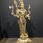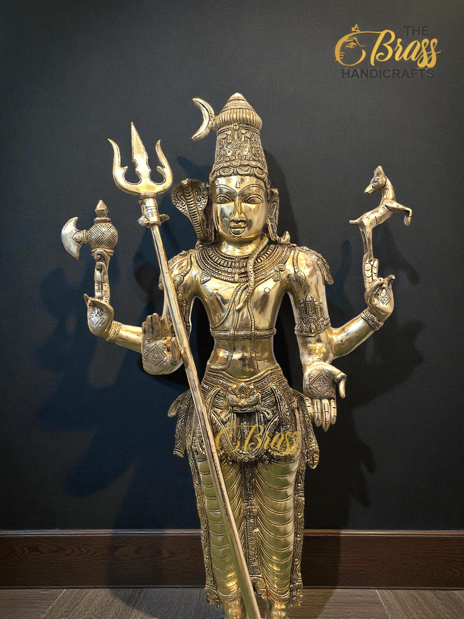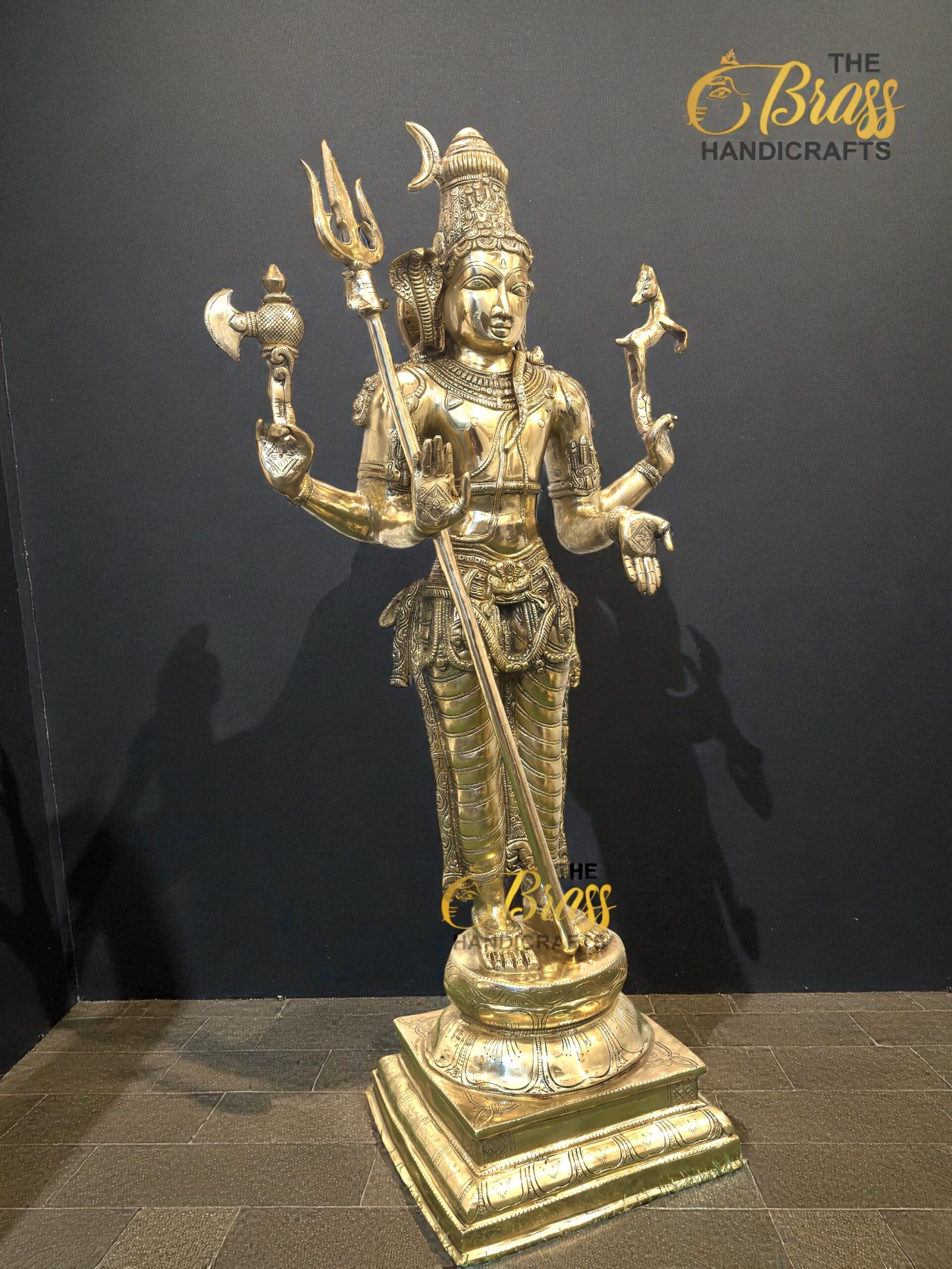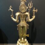 Standing tall at 36 inches, this sculpture is made from solid pure brass and weighs approximately 35 kg, making it a substantial and long-lasting centerpiece for temples, home altars, and grand interiors. The antique finish enhances its timeless elegance, giving it a spiritual aura and royal charm.