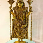 Crafted by master artisans, the statue features exquisite details that capture the essence of Lord Balaji’s divine form. From the intricately carved ornaments and the serene expression on his face to the elaborate drapery, each aspect of this brass statue reflects unparalleled craftsmanship. The luxurious and antique finish enhances its traditional appeal, creating a regal and sacred ambiance wherever it is placed.