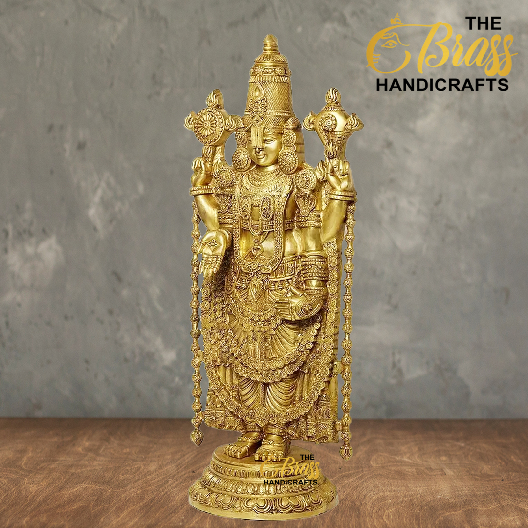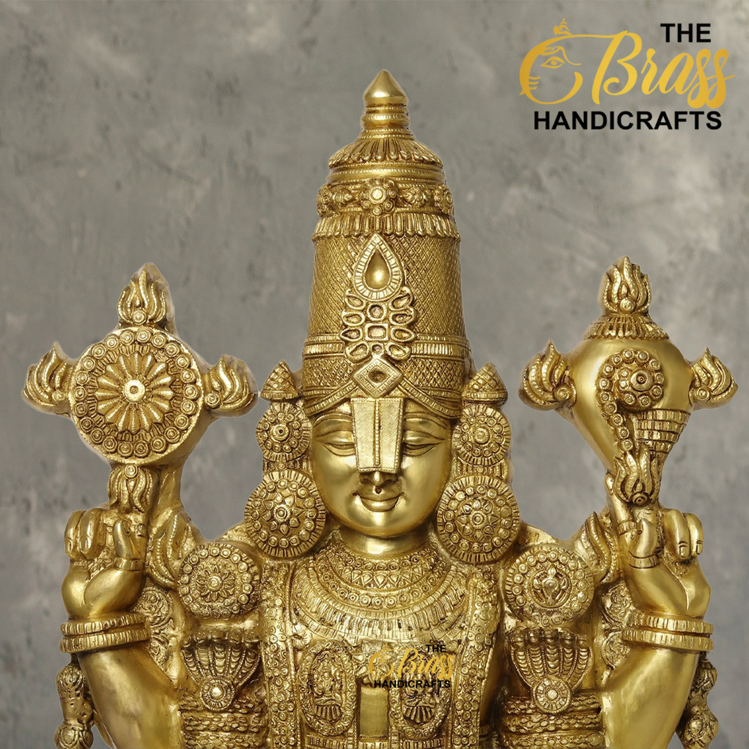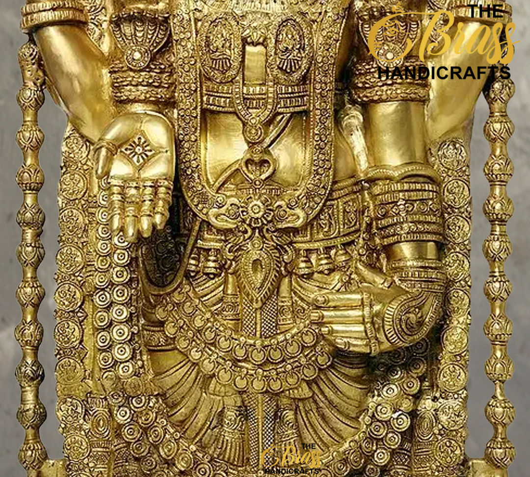 Invite divine grace into your home with the Majestic Brass Balaji Statue. Standing an impressive 48 inches tall and weighing 46 kg, this stunning statue of Lord Venkateswara (Balaji) is a testament to exquisite craftsmanship and spiritual grandeur. Perfect for those seeking to create a sacred and serene atmosphere, this statue is a captivating centerpiece for any home, temple, or meditation space.