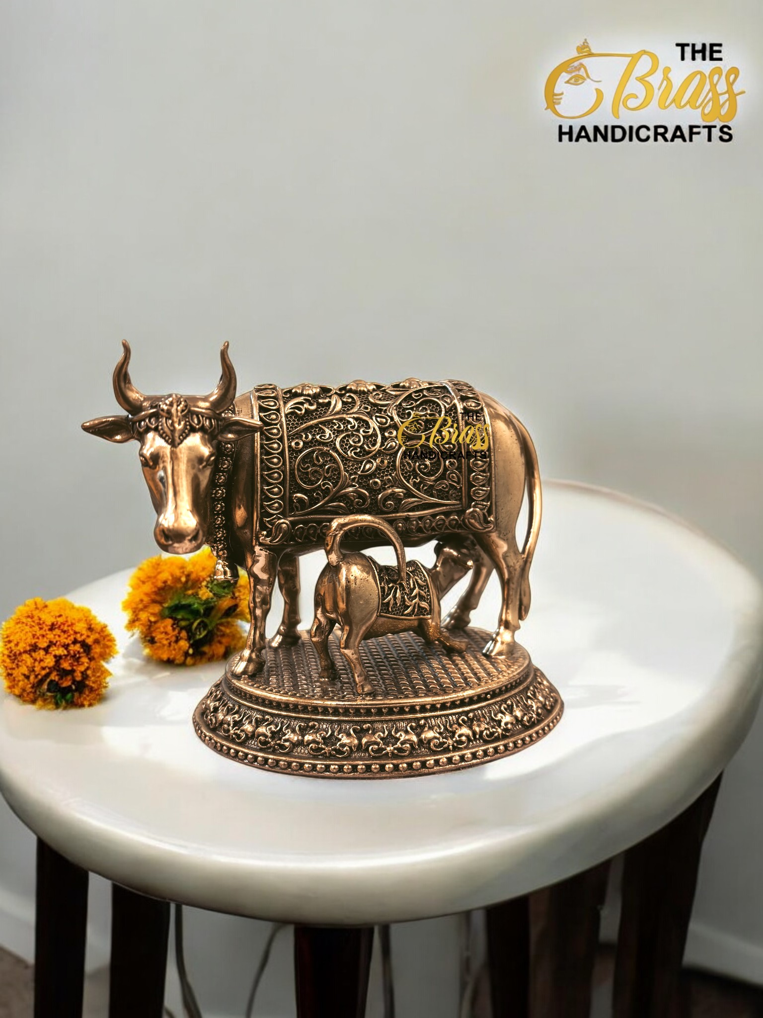 Bring home divine blessings and prosperity with this Pure Brass Cow & Calf Statue, masterfully created using the traditional Lost Wax Casting Method. This technique ensures exceptional detailing, smooth finishing, and a premium look that lasts for generations.
