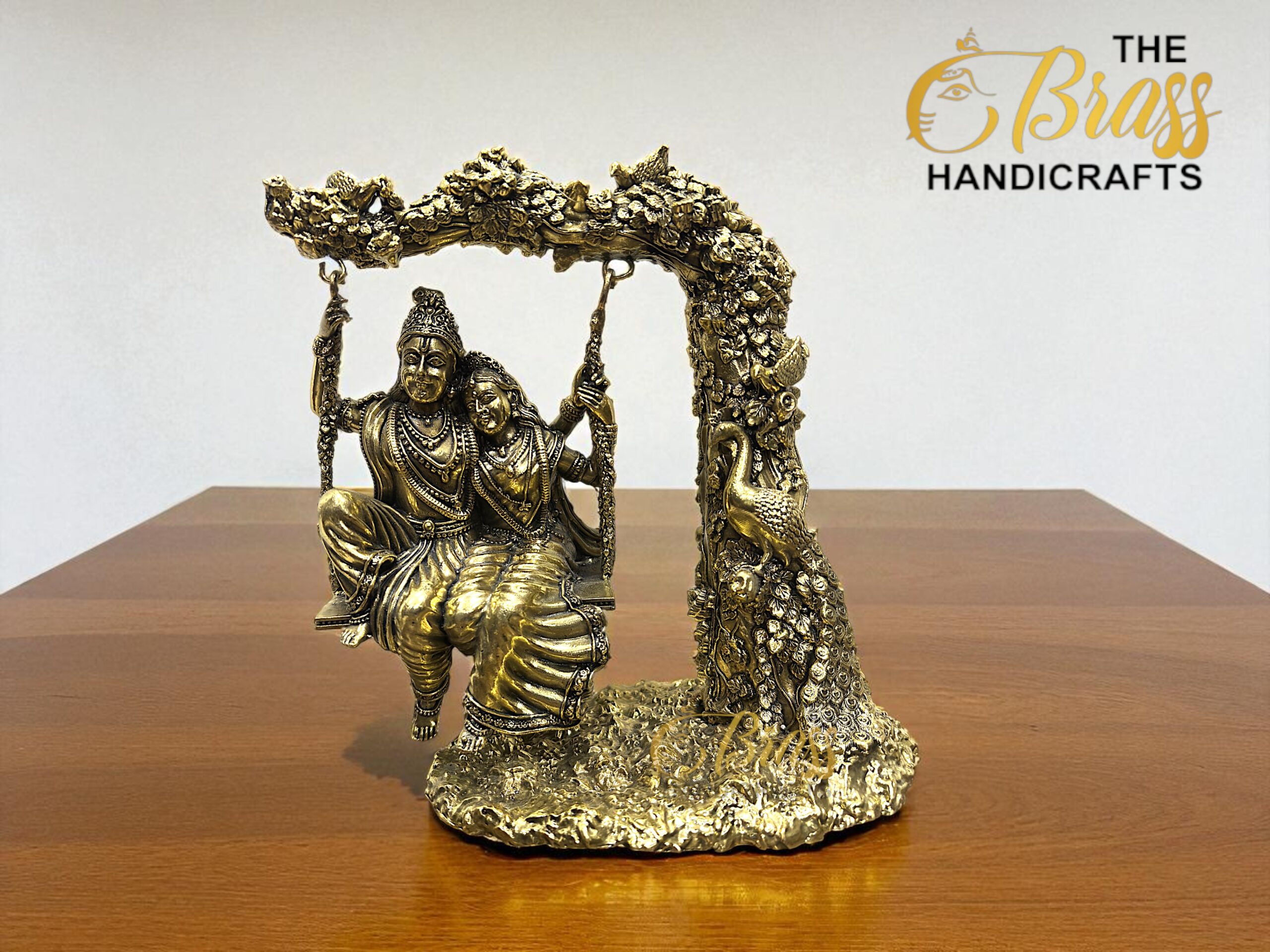 Bring home the essence of divine love and craftsmanship with this Pure Brass Radha Krishna on Swing (Jhula) statue. Handcrafted by skilled artisans, this sculpture showcases Radha and Krishna seated gracefully on a jhula beneath a beautifully carved tree, all rendered in a stunning 3D design. Every element — from Krishna’s flute to Radha’s gentle expression — is deeply engraved to reflect traditional Indian artistry and devotion.