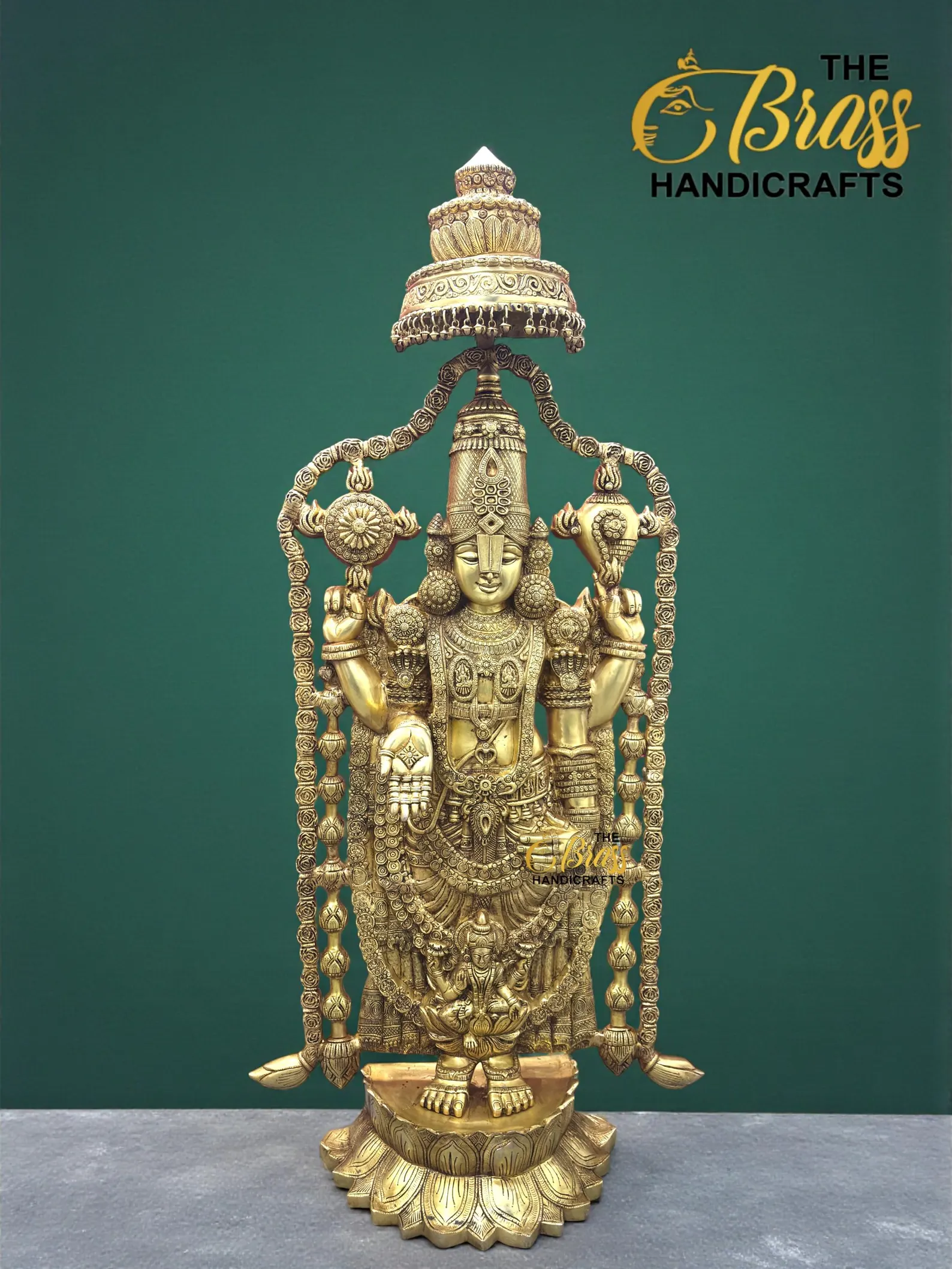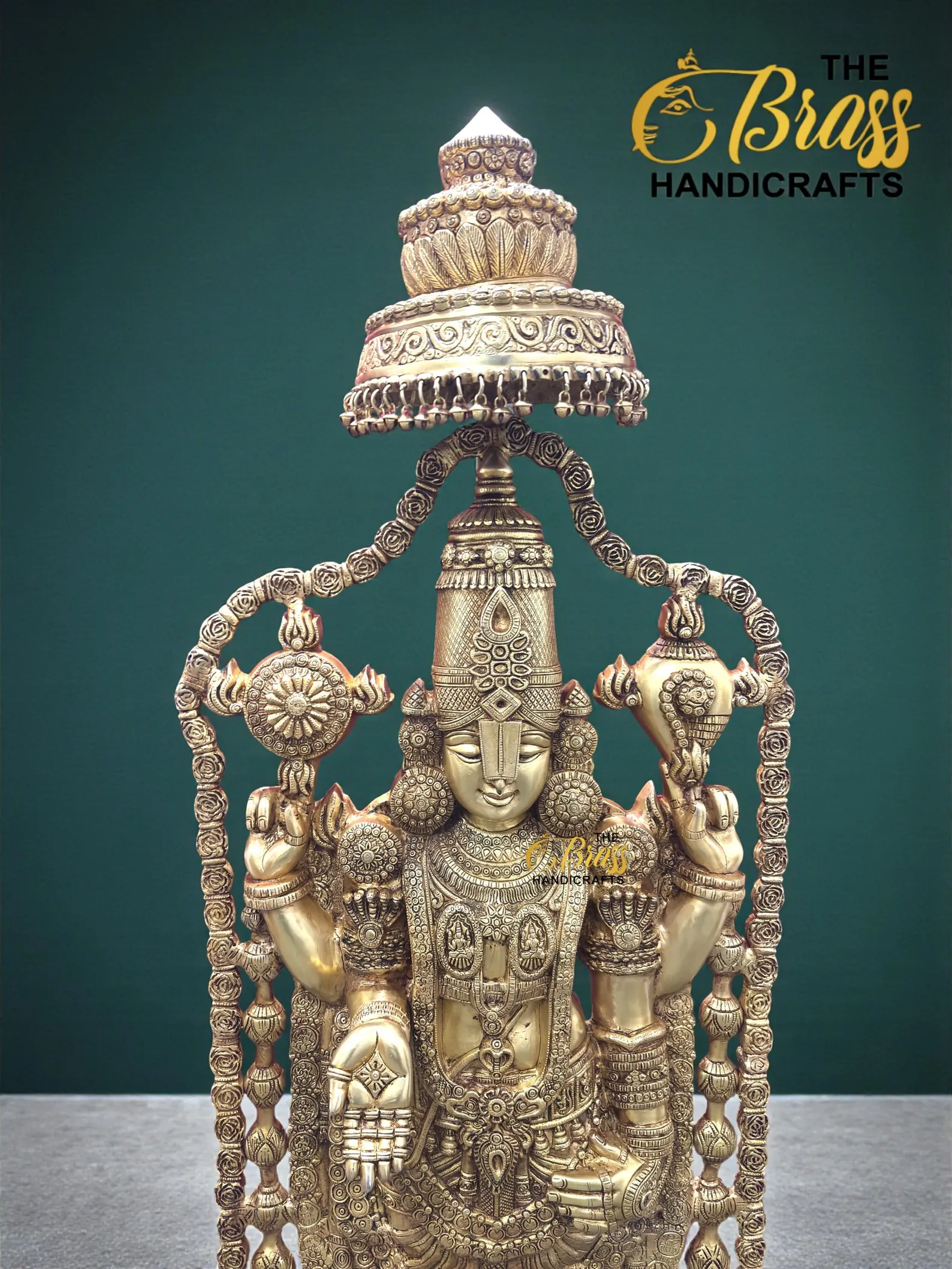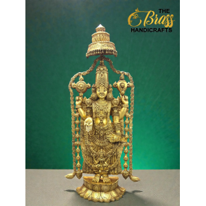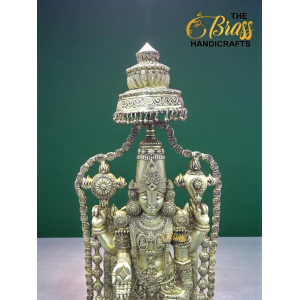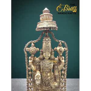 Experience divine magnificence with this 58-inch Pure Brass Tirupati Balaji Idol, a grand representation of Lord Venkateshwara crafted with exceptional artistry and devotion. Standing nearly five feet tall and weighing approximately 60 kg, this monumental idol radiates temple-like presence and spiritual authority. Designed with an intricately detailed gopuram-style arch and beautifully sculpted garland, every element reflects traditional South Indian craftsmanship.