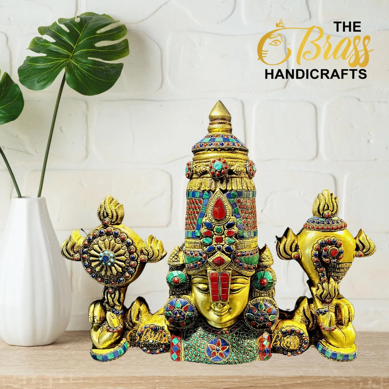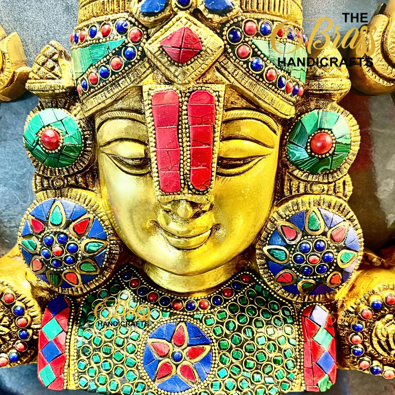 Brass Tirupati Balaji Bust with Intricate Stonework